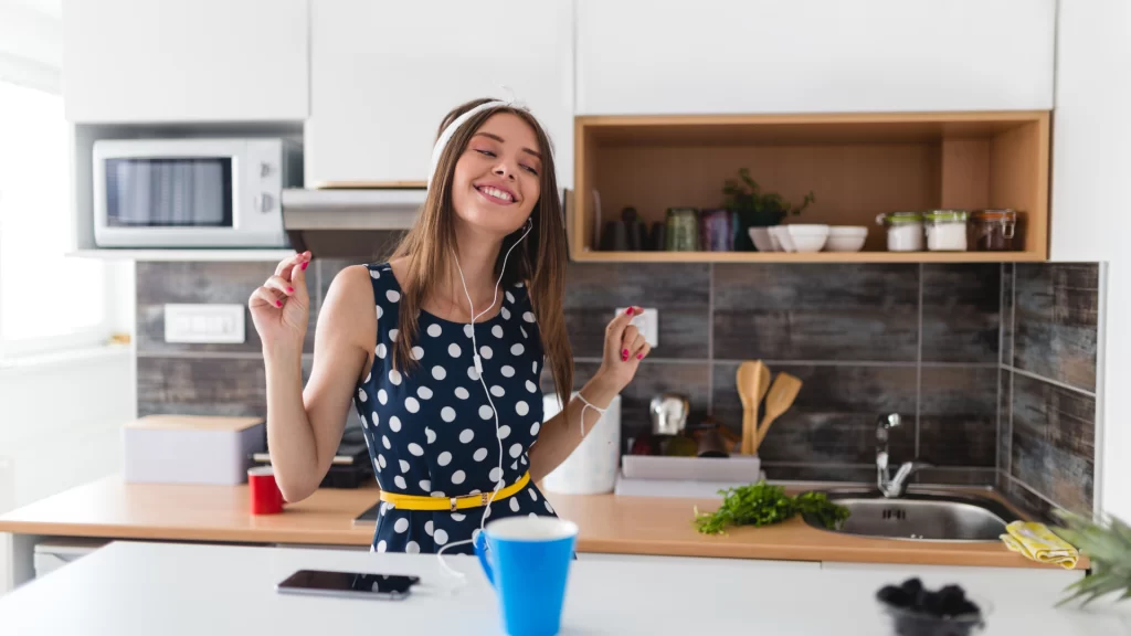 Exercise isn’t another mindless checkbox to complete. Reframe it so that it’s not punishment, or something that you dread and instead being one with your body. Whether it’s stretching between meetings, exercising before bed, or dancing in the living room, your body needs moments of joyful movement.
